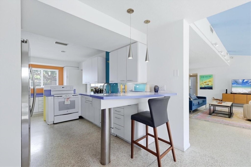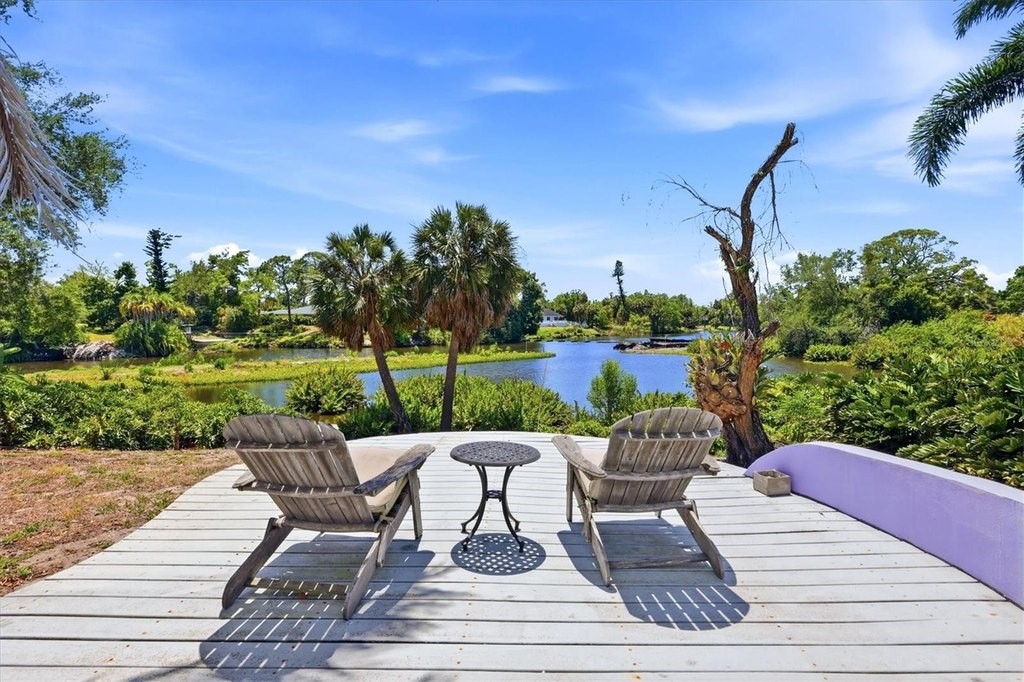 Stunning, mid-century modern home in highly desirable South Gate with views you must see to believe! If you could have picked one of the best lots in South Gate back in the 1960's this may have been it. The two-bedroom plus office, two bath home sits on a bluff overlooking a wide portion of Philippi Creek including a large aquatic preserve. You'll be mesmerized by long, unobstructed views in every direction. A nature lovers delight and absolutely intoxicating. But while location is important, there are many more features in this classic home to consider. Entering through the large foyer you'll immediately notice beautiful terrazzo floors throughout and a great room with vaulted ceilings. There's an adjacent dining area off the kitchen and all of these spaces look out through what appears to be a "wall of glass" dedicated to the world class view of flora and fauna. The primary bedroom also has views and access to the back yard and the primary bathroom has been upgraded with a separate tub and walk in shower. The den/office can be made more private with sliding pocket doors and function as a guest bedroom. It even has a dedicated, enclosed patio and garden space. There's an attached, oversized garage with room for your workshop and a double wide driveway with plenty of parking. While this home has been appropriately updated and improved over the years you'll find it's all been done with a great sensibility to the original intent, quality and "hipness" so many are learning to appreciate, again.